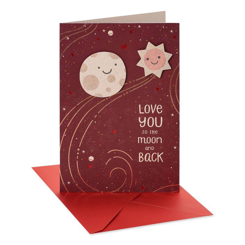 Show your special someone how much you care with this cute Valentine’s Day card from American Greetings! The fun design features a happy moon and sun living among the stars while joyfully sharing thei…
