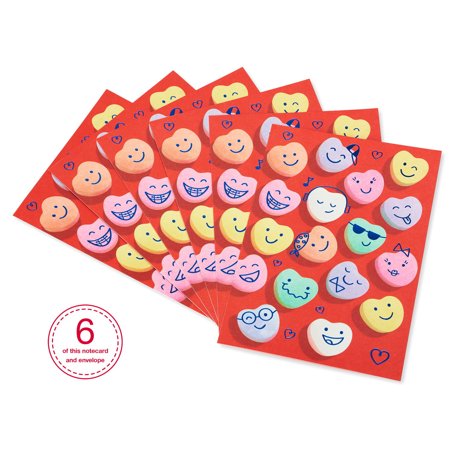 Share a little sweetness this valentines day with an american greetings card this card features brightly colored conversation heart candies with whimsical faces accessories and hearts drawn on them wi…
