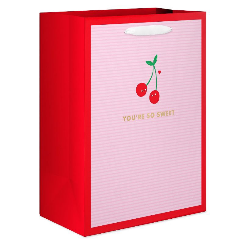 - DESIGN & FINISHINGS: This large Valentine's Day gift bag features an adorable graphic of smiling cherries with the message 'You're so sweet'