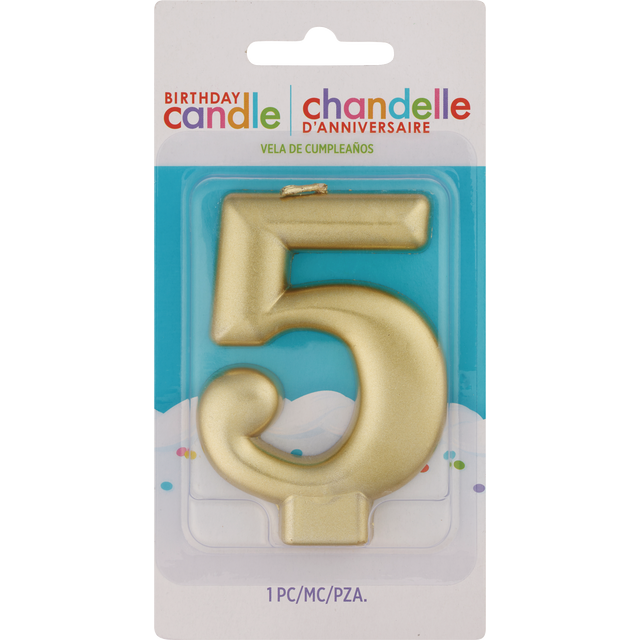 slide 1 of 1, AMSCAN Cndl Metallic Numeral #5 Gold, 1 ct