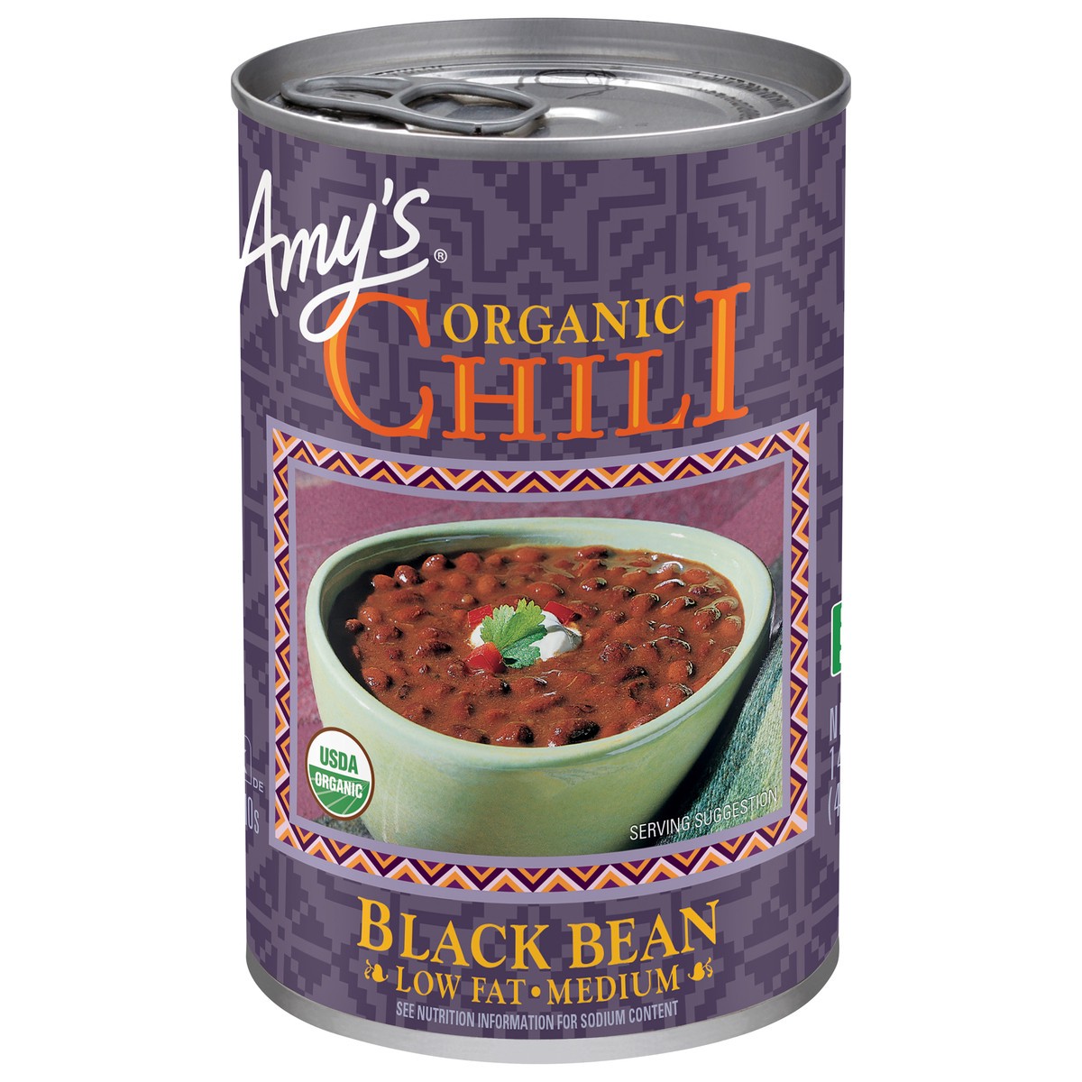 Ready to serve Black Bean Chili. Chili is fun food - hearty, substantial and just plain good eating. Amy's meatless version of this well-known dish - made from organic ingredients - will satisfy chili…