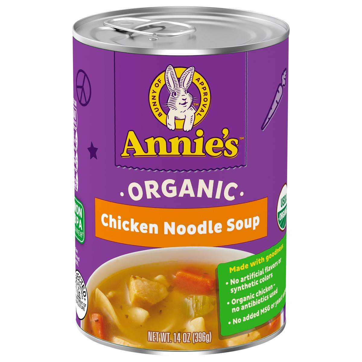 For those hopping and busy days, enjoy the warm and yummy taste of Annie's Organic Chicken Noodle canned soup. Made with chicken with no antibiotics used and tasty egg noodles, this quick and easy rea…