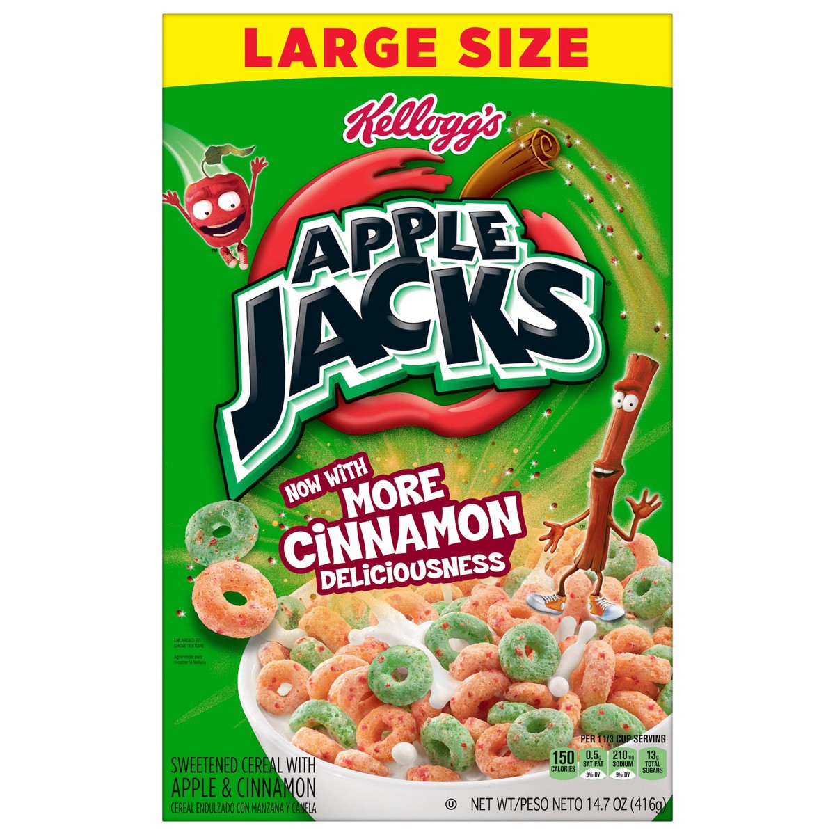 Start your day with Kellogg’s Apple Jacks Cereal and the crunch of lightly sweetened multigrain O’s with the flavor of crisp apples and cinnamon. A healthy\, low-fat cereal\, Apple Jacks is a good sou…