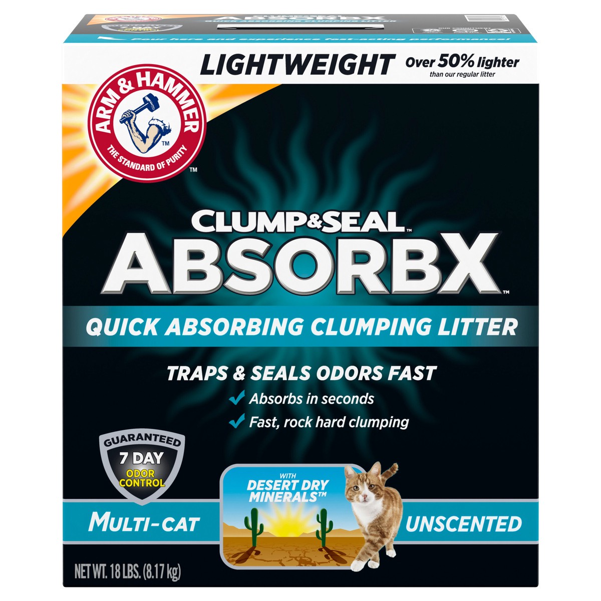 With ARM & HAMMER™ Clump & Seal™ AbsorbX™ Multi-Cat Unscented quick absorbing clumping litter, say goodbye to lingering wetness. Our formula is made with all new, desert dry minerals that quickly abso…