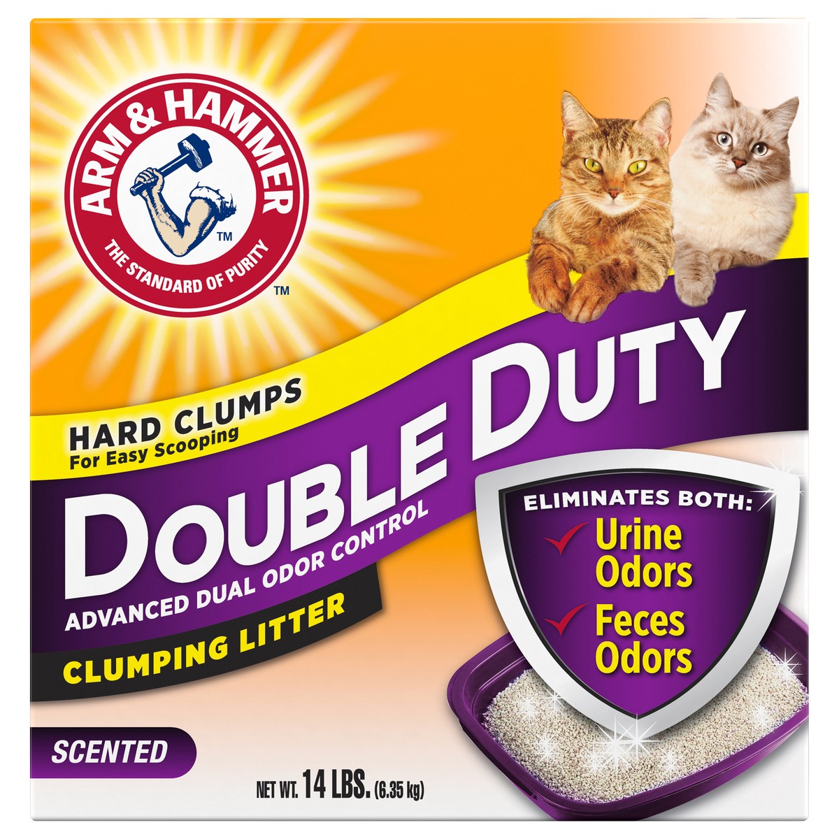 ARM & HAMMER™ Double Duty Clumping Litter eliminates both types of odors for Advanced Odor Control. Its breakthrough cat litter formula destroys urine AND feces odors on contact, and helps keep your h…