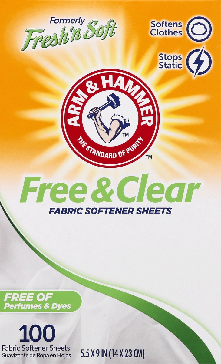 5.5 x 9 in. (14 x 23 cm). The standard of purity. Softens clothes. Reduces static cling. Free of perfume and dyes. Formerly Fresh'n Soft. www.armandhammer.com. how2recycle.info. Visit us at www.armand…