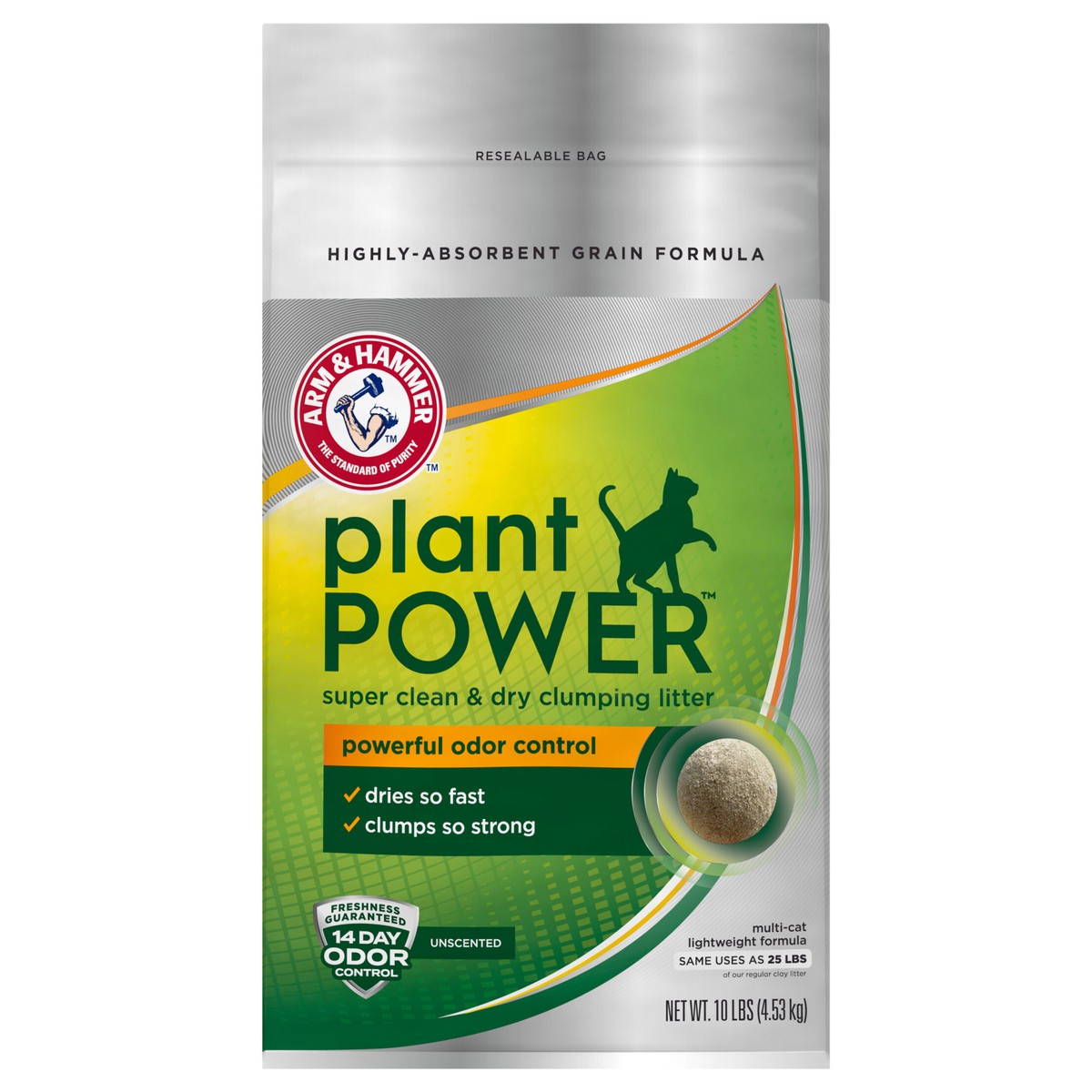ARM & HAMMER Plant Power Unscented Lightweight Clumping Cat Litter, 14-Day Odor Control for Multi-Cat Households, Super Absorbent Naturally Derived Corn & Wheat Formula, 10 Lbs
