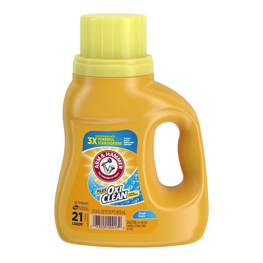 ARM & HAMMER Plus OxiClean Liquid Laundry Detergent is ideal in standard and High Efficiency (HE) washing machines. This low-sudsing, clean-rinsing fresh scent detergent delivers 5 powerful cleaning b…