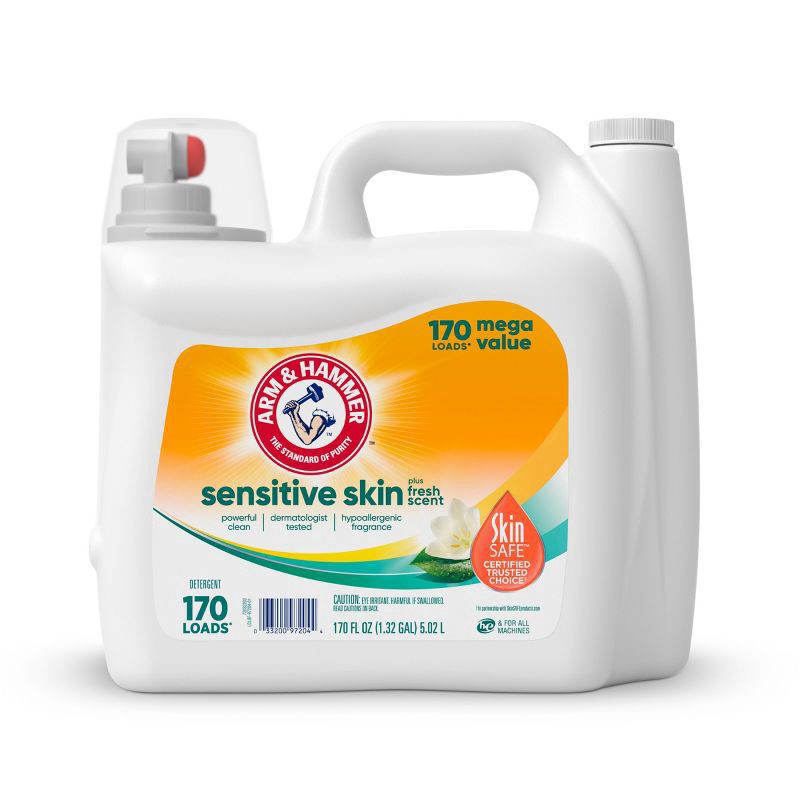 ARM & HAMMER Sensitive Skin Liquid Laundry Detergent is gentle on skin, but powerful on dirt. This HE laundry detergent liquid is concentrated with 2X powerful stain fighters in every load vs the lead…