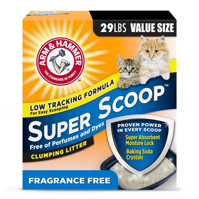 ARM & HAMMER Super Scoop Fragrance Free Clumping Cat Litter is a low tracking clumping litter with a super absorbent moisture lock clay formula with ARM & HAMMER Baking Soda Crystals to instantly atta…