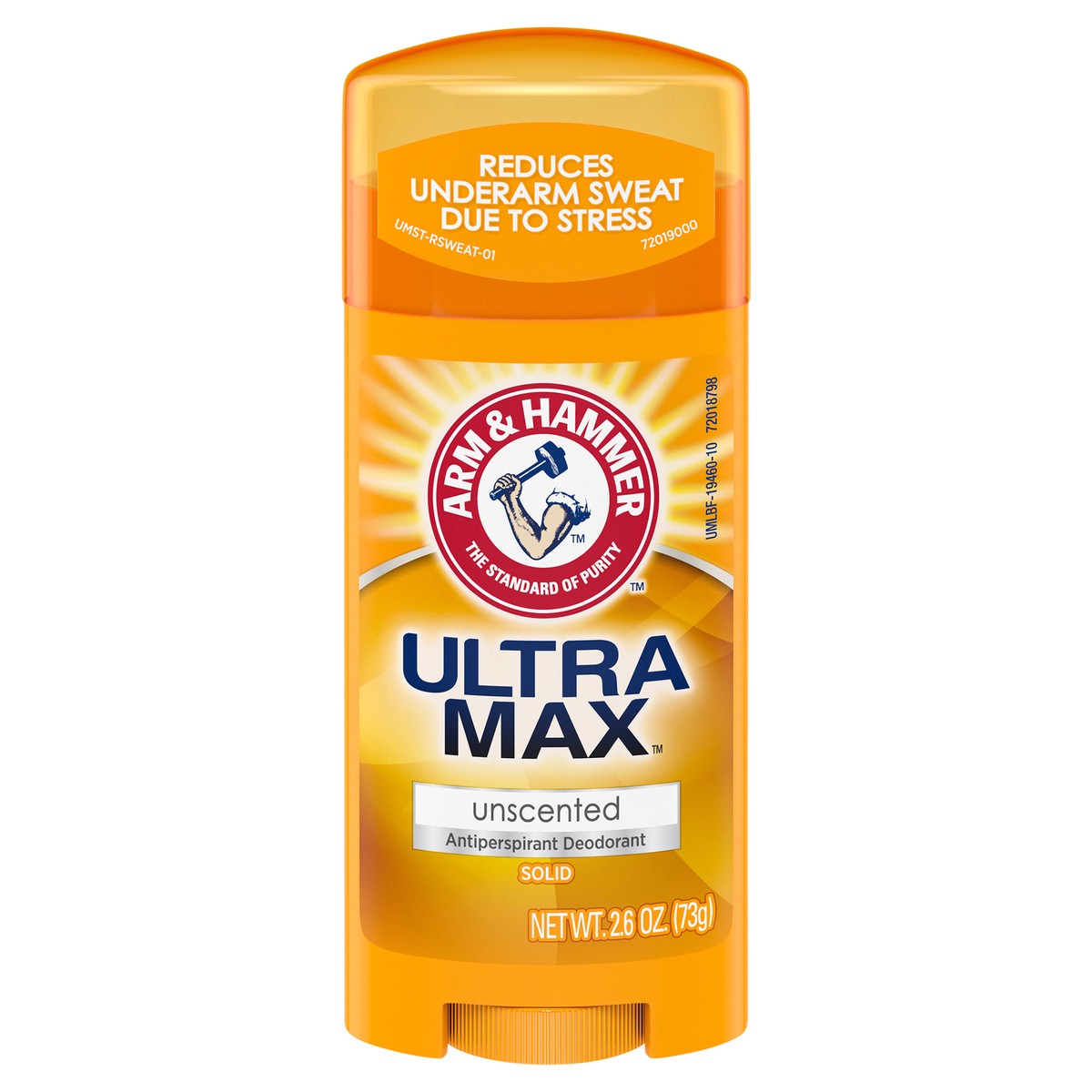 ARM & HAMMER ULTRA MAX deodorant decreases underarm wetness and reduces underarm sweating due to stress. With ULTRA MAX, the natural power of baking soda helps fights odors so you can feel and smell y…