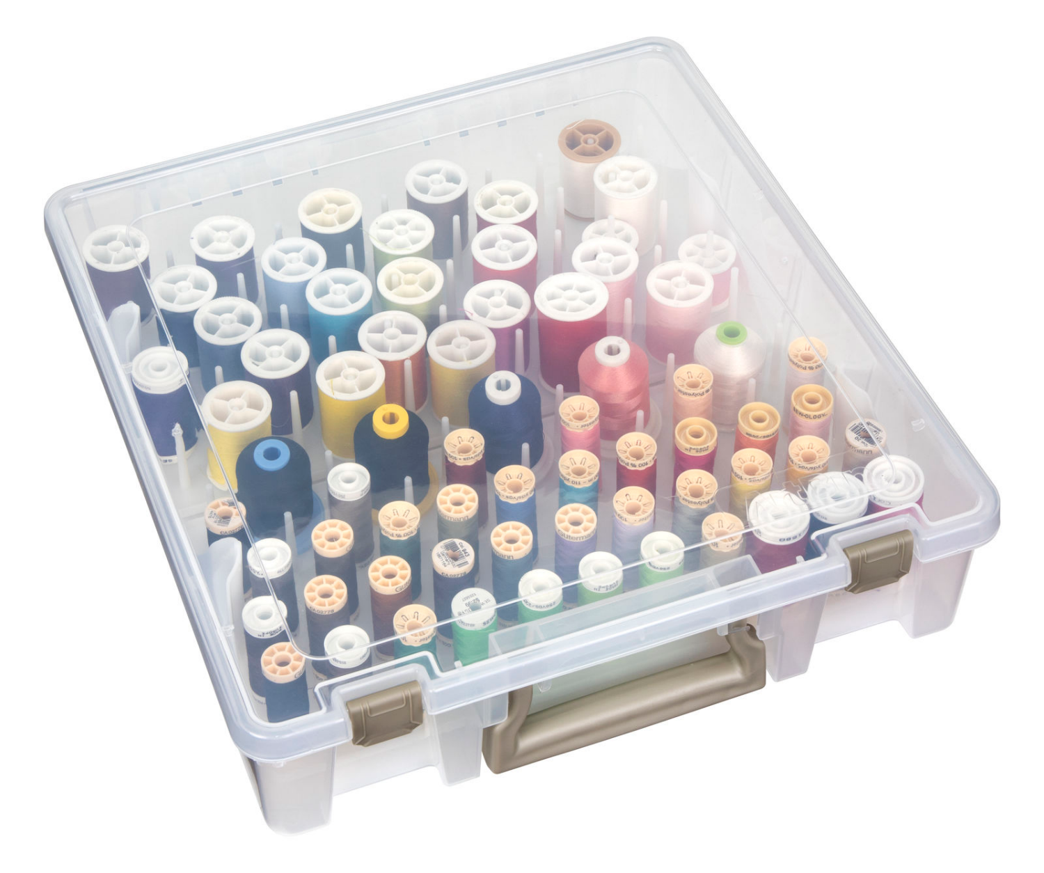 The Super Satchel Thread Box has two removable white thread trays that provide maximum storage capabilities for all leading brands of machine and machine embroidery, sewing and quilting spools, includ…