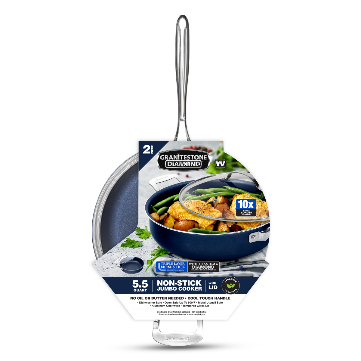 The Granite Stone Diamond Jumbo Cooker will be your new favorite cooking fixture. This deep, highsided pan lid set is equipped for profuse culinary adventures, from slowsizzling paellas to blissful c…