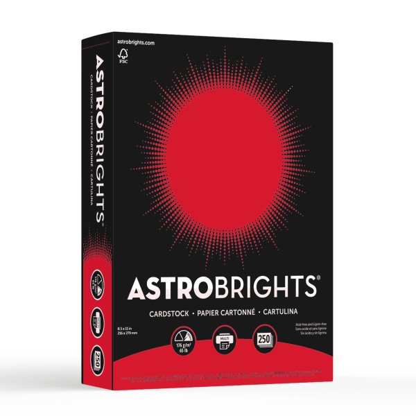 ASTROBRIGHTS Color Card Stock, FSC Certified, 30% Recycled, 65 lb, Re-Entry Red