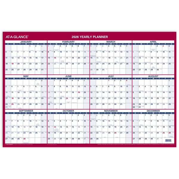 AT-A-GLANCE® 2026 Vertical Horizontal Reversible Erasable Yearly Wall Calendar, Large, 24"" x 36""