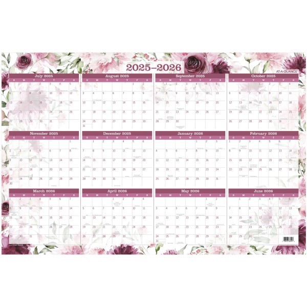 AT-A-GLANCE® BADGE Reversible Erasable Academic and Regular Year 2025-2026 Wall Calendar, Floral, Extra Large, 24"" x 36""