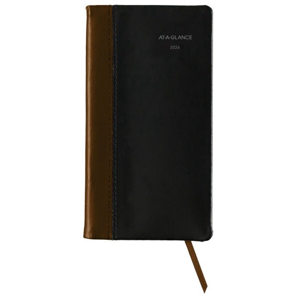 AT-A-GLANCE® Fine Diary® 2026 Weekly Monthly Diary, Black Brown, Pocket, 3"" x 6""