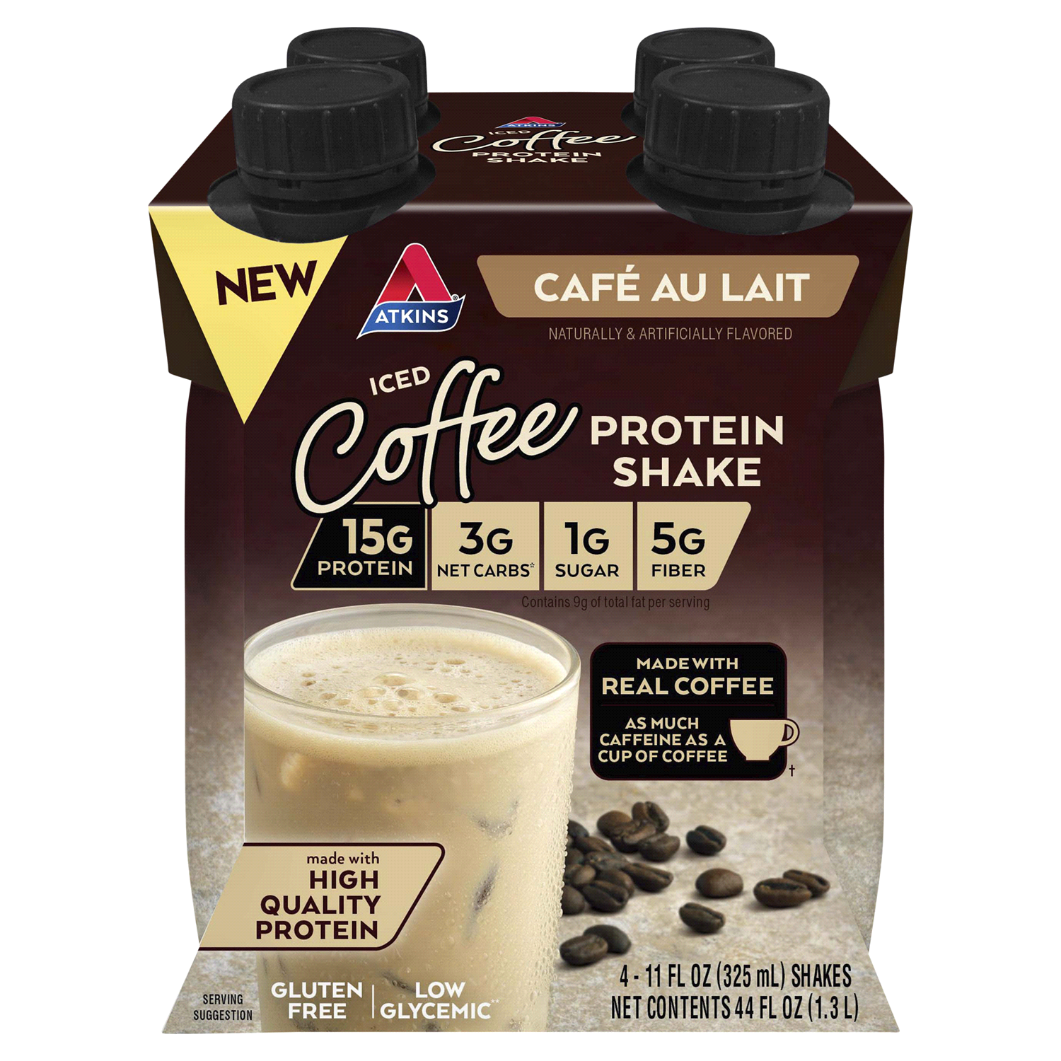 Atkins™ Café au Lait flavored Iced Coffee Protein Shakes are low sugar*, low carb* and have the sophisticated taste of cafe au lait with the enlivening kick of a cup of coffee in a delicious protein s…