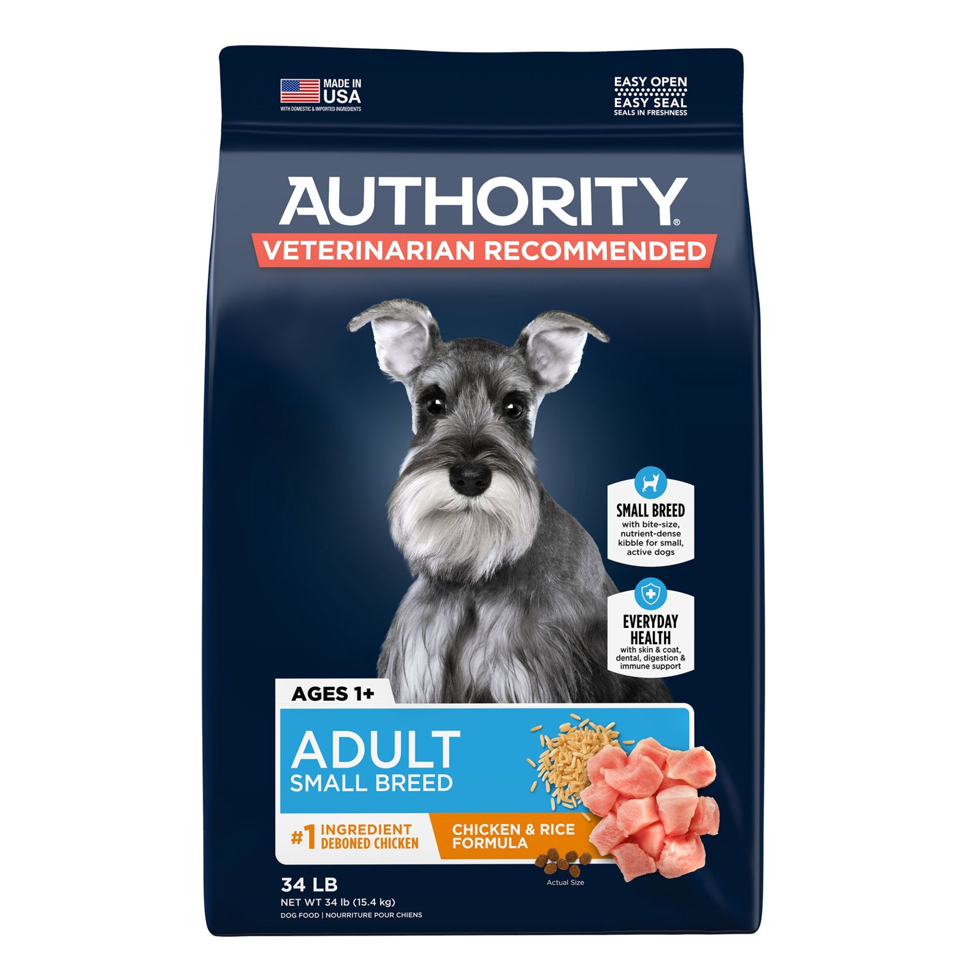 slide 1 of 1, Authority Everyday Health Small Breed Adult Dry Dog Food - Chicken, 34 lb