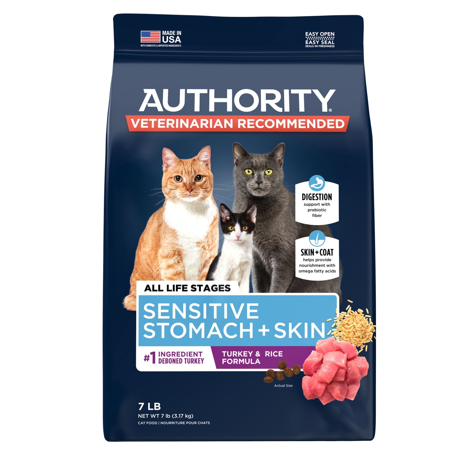 Authority Sensitive Stomach & Skin Cat Dry Food - Turkey & Rice, With-Grain