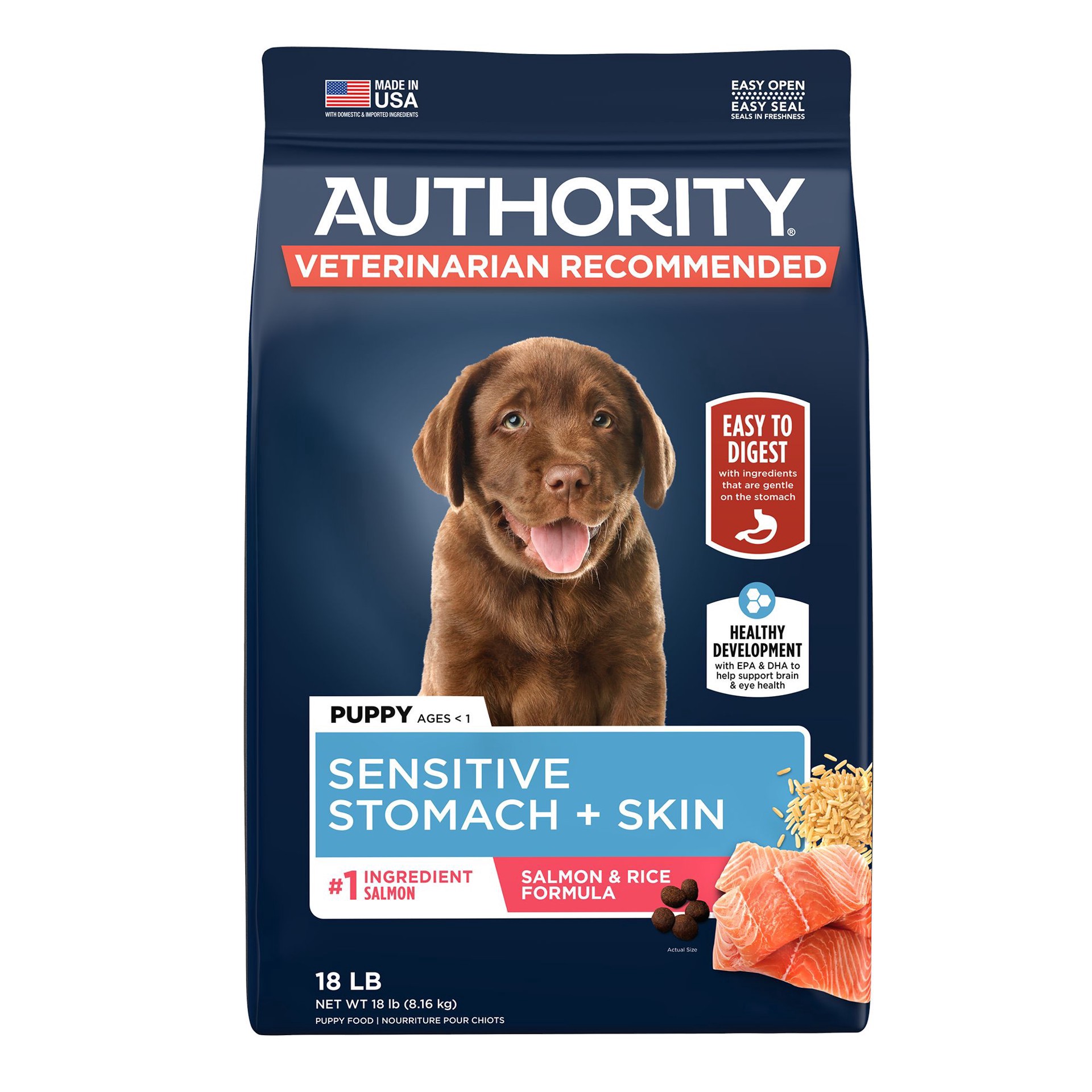 slide 1 of 1, Authority Sensitive Stomach & Skin Puppy Dry Dog Food - Salmon, 18 lb
