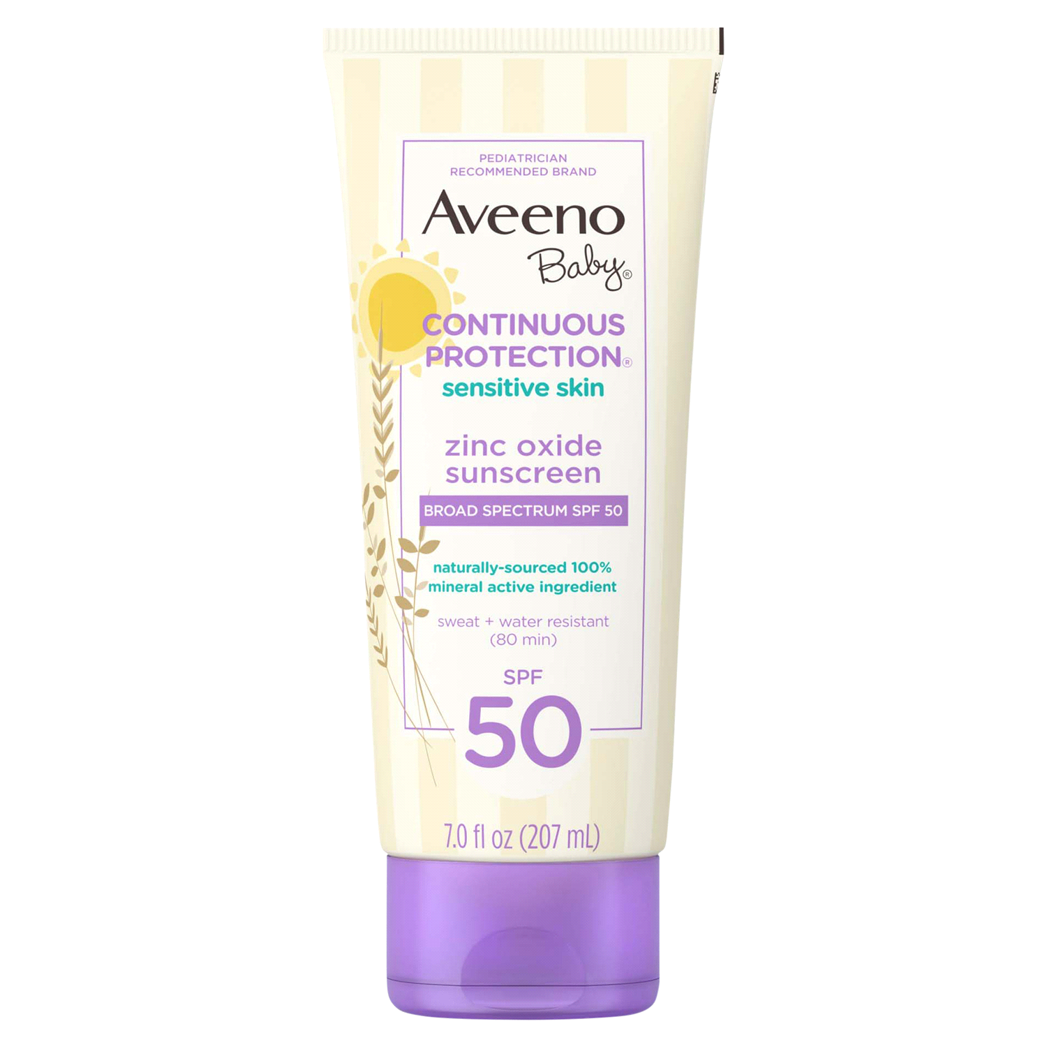An effective baby mineral sunscreen that's as mild as water to skin. Aveeno Baby Continuous Protection Sensitive Skin Mineral Sunscreen Lotion with Broad Spectrum SPF 50 contains skin-soothing oat & n…