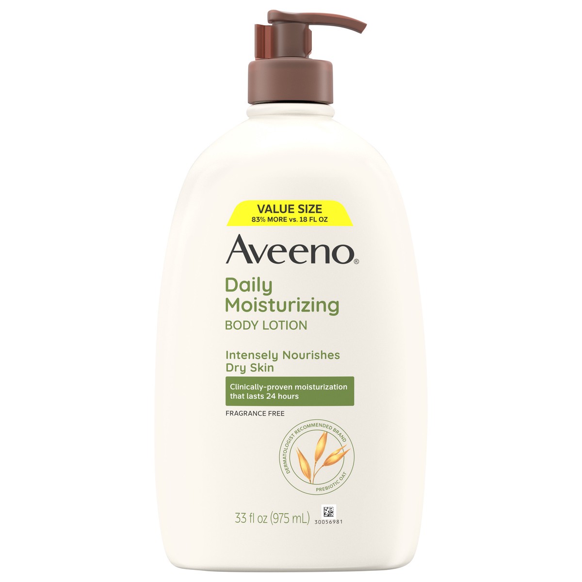 Aveeno Daily Moisturizing Body Lotion with Prebiotic Oat intensely nourishes dry skin. Formulated with a soothing prebiotic oat, the fragrance-free lotion has clinically proven moisturization that las…