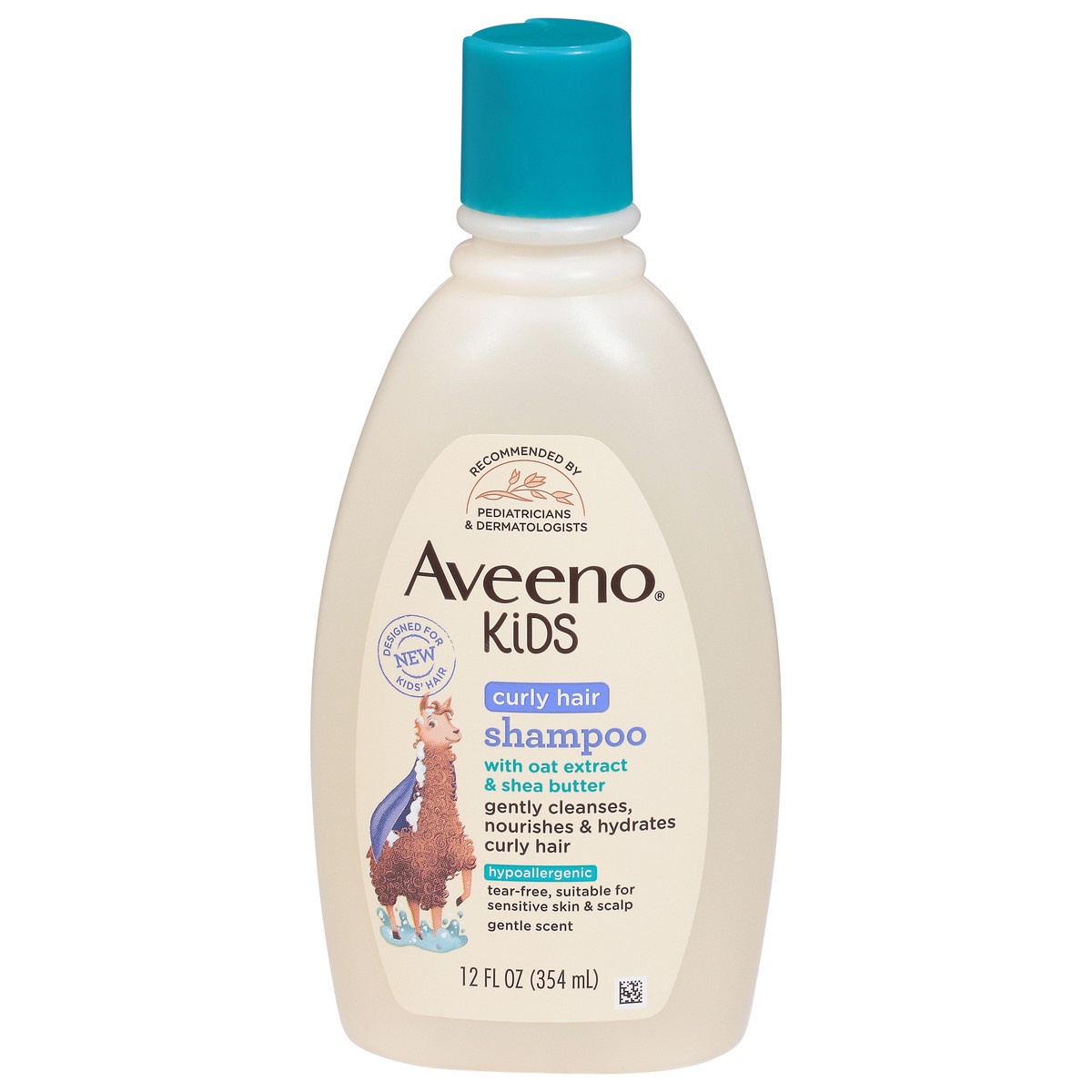 Aveeno Kids Curly Hair Shampoo, with oat extract and shea butter, gently cleanses, nourishes, and hydrates kids' hair for soft, manageable curls. Suitable for sensitive skin and scalp, this curl defin…