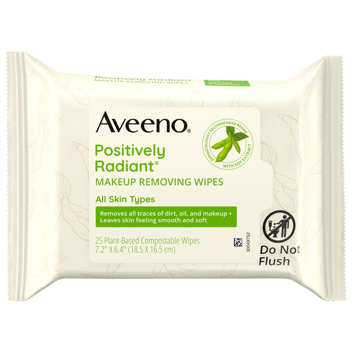 Aveeno Positively Radiant Makeup Removing Face Wipes easily remove oil, dirt, bacteria, and makeup - even waterproof mascara - that can leave skin looking dull and tired. These nourishing makeup remov…