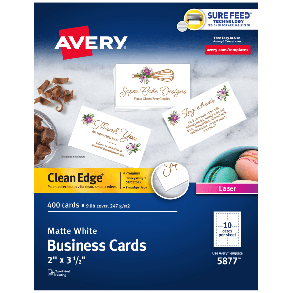 Avery Laser Clean-Edge Two-Side Printable Business Cards, White