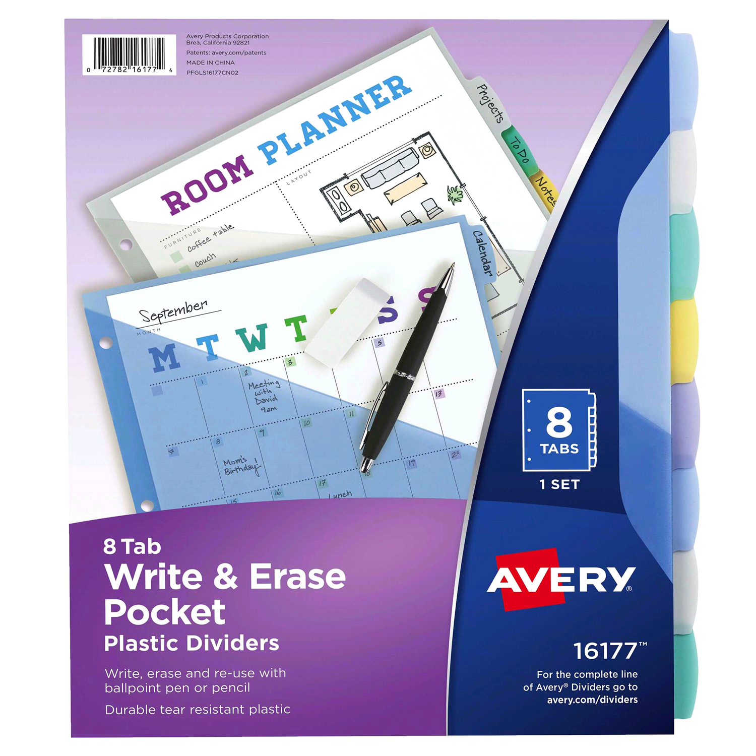 Avery Multicolor Write-On Big Tab Dividers with Pocket, 8-Tab, Letter, 1 Set