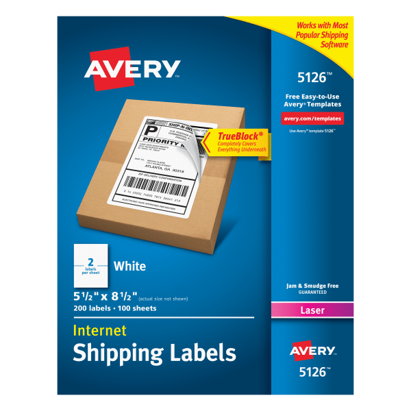 Avery Trueblock White Laser Shipping Labels, Internet, 5126