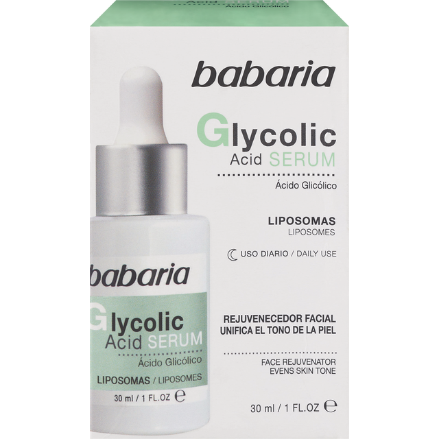 Babaria serum with liposome-encapsulated glycolic acid (higher concentration): A serum with a higher concentration of glycolic acid intensifies the effects of the active ingredient. Being a lighter pr…