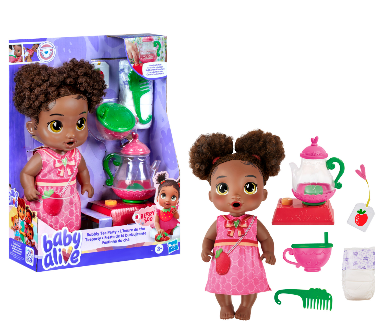 Berry Boo is ready for a magical tea party with the Baby Alive Bubbly Tea Party baby doll set! Fill the tea kettle with water and place it on the toy stovetop to imagine getting ready to make tea. Theā¦