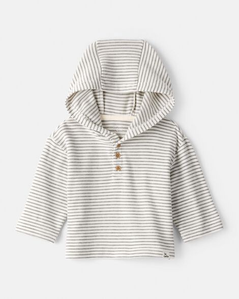 slide 2 of 3, Baby Boy Long-Sleeve Striped Hooded Top - Grey Grey 6M, 1 ct