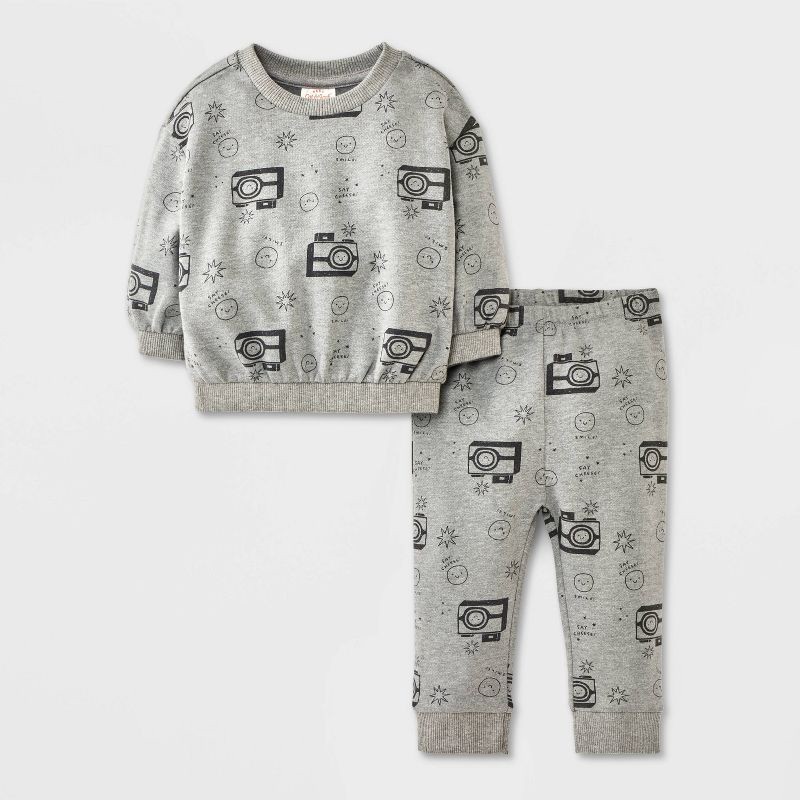 Baby Boys' 2pc Camera Fleece Sweatshirt & Jogger Pants Set - Cat & Jack™ Gray 0-3M