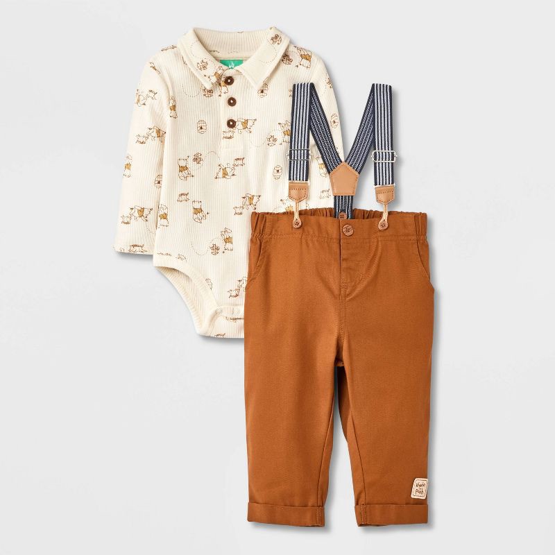 Dress your little one in classic Disney style with this adorable Baby Boys' 2pc Disney Winnie the Pooh Long Sleeve Bodysuit & Pants Suspender Set – Brown. It features a soft short sleeve bodysuit with…