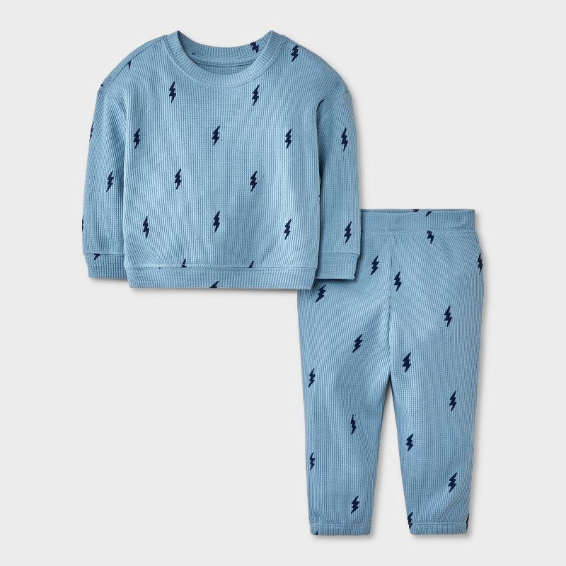 Baby Boys' 2pc Lightning Bolt Waffle Sweatshirt & Jogger Pants Set - Cat & Jack™ Blue Newborn