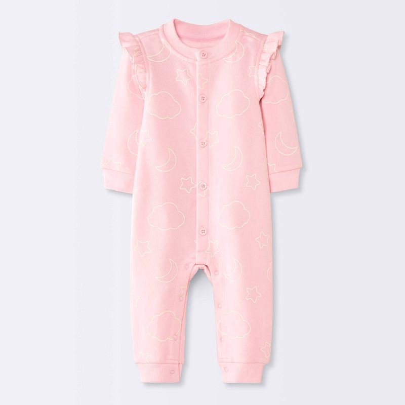 Baby Girls' Moon and Stars Fleece Romper - Cloud Island™ Pink 3-6M