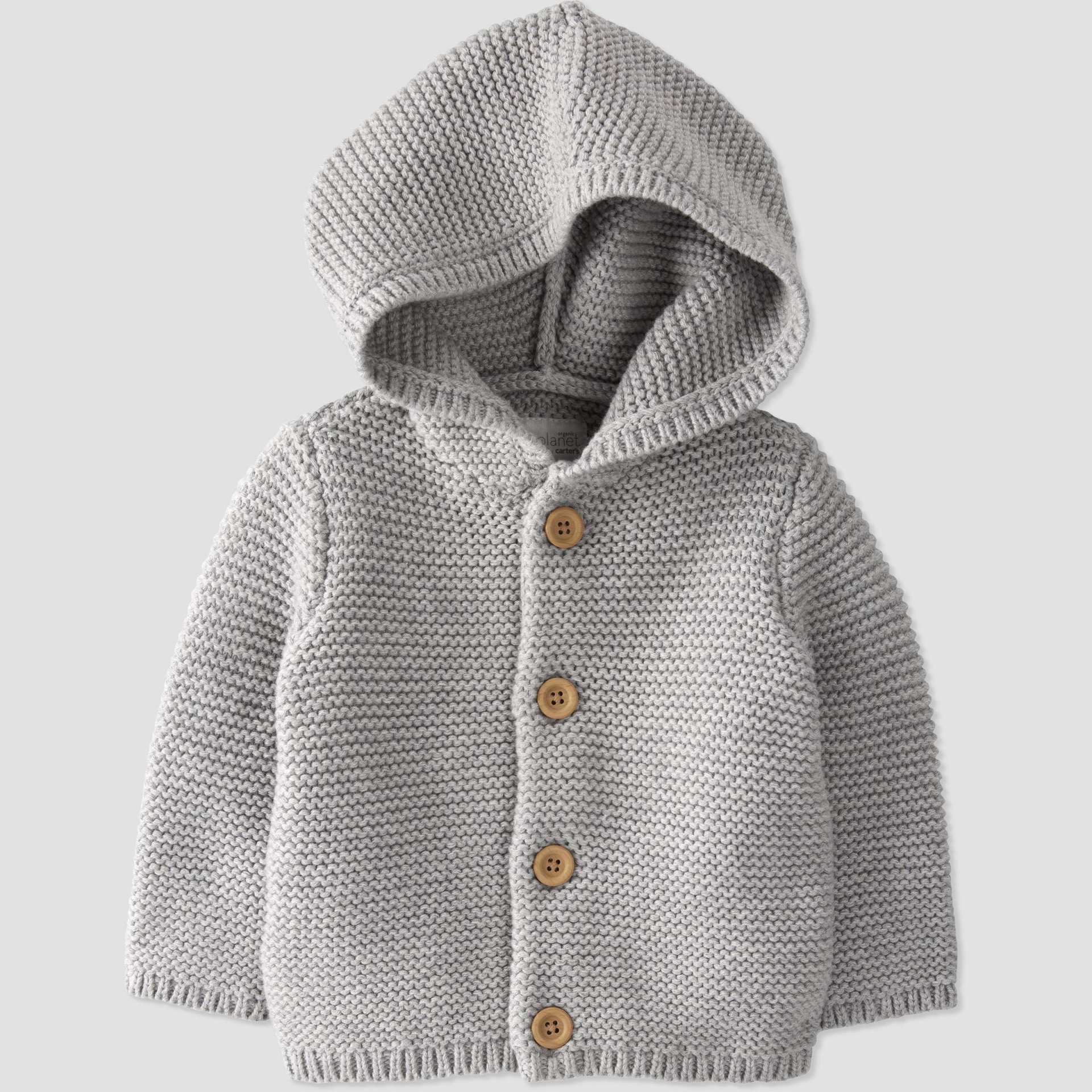 Baby Organic Cotton Hooded Sweater - little planet by carter's Gray Newborn
