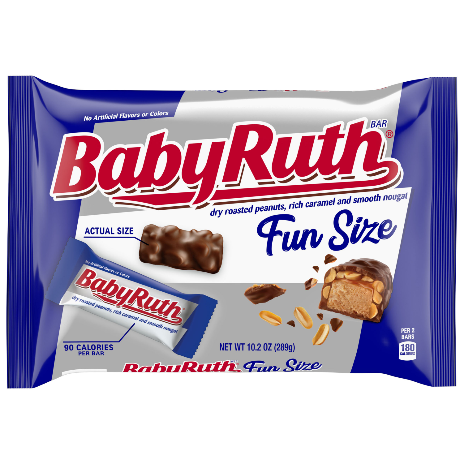 It's time to get your sweet treat on with Baby Ruth Fun Size candy bars in a shareable bag. These peanuty, chocolatey and perfectly sized bars are small in size but big on taste. Packed with dry roast…