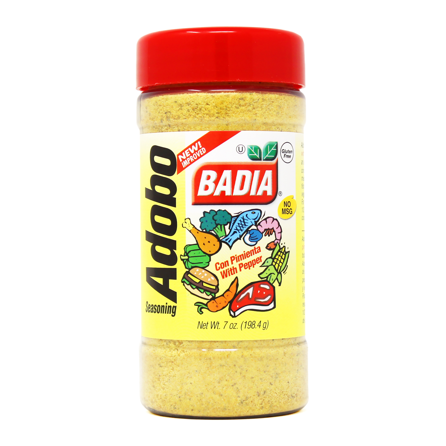 New! Improved. Gluten free. No MSG. Adobo seasoning with pepper is all around condiment for meats, poultry, fish, seafood, and vegetables. Visit our website: www.badiaspices.com. Please recycle! Packe…