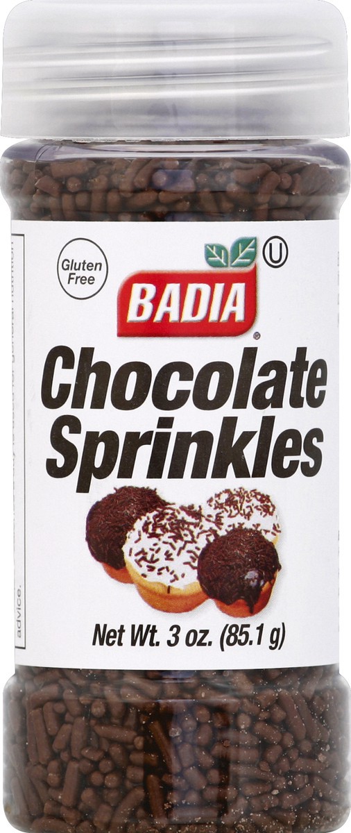 Gluten free product. Please recycle! Badia Chocolate Sprinkles are the perfect finishing touch for decorating cakes, cupcakes, cookies and ice cream. Add a little color to your desserts. For nutrition…
