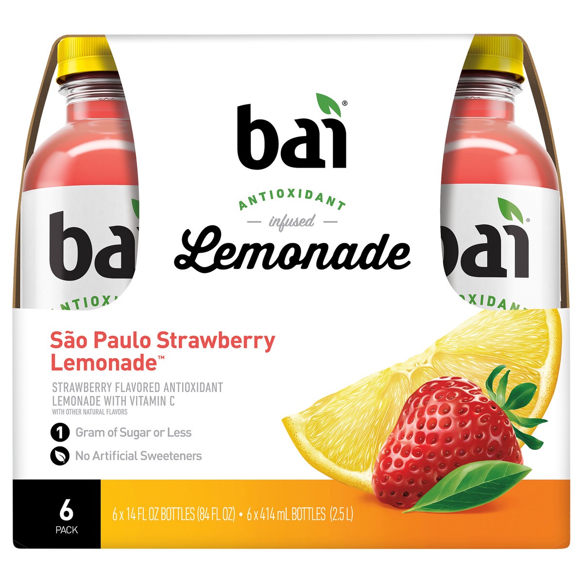 Strawberry flavored antioxidant lemonade with vitamin C. With other natural flavors. 1 gram of sugar or less. Antioxidant (per bottle): 11 mg vitamin C; 75 mg polyphenols from tea and coffeefruit extr…