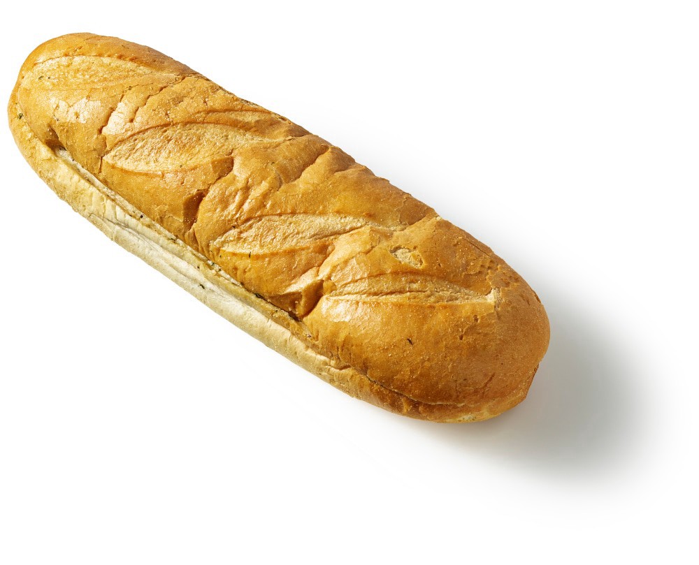 Soft crunchy bread with melt in your mouth crumb filled with tangy garlic smear. Unbleached wheat flour.