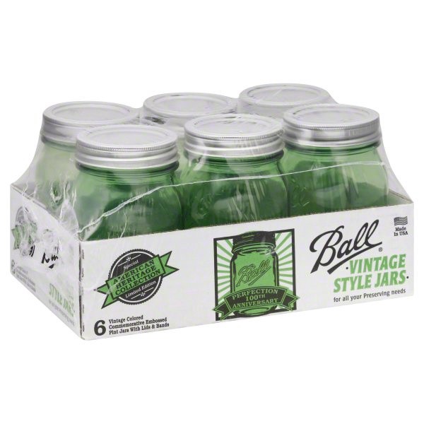 Limited Edition. 6 vintage colored commemorative embossed quart jars with lids & bands. Last in the series. American Heritage Collection. Improved 100th anniversary. For all your preserving needs. Cra…