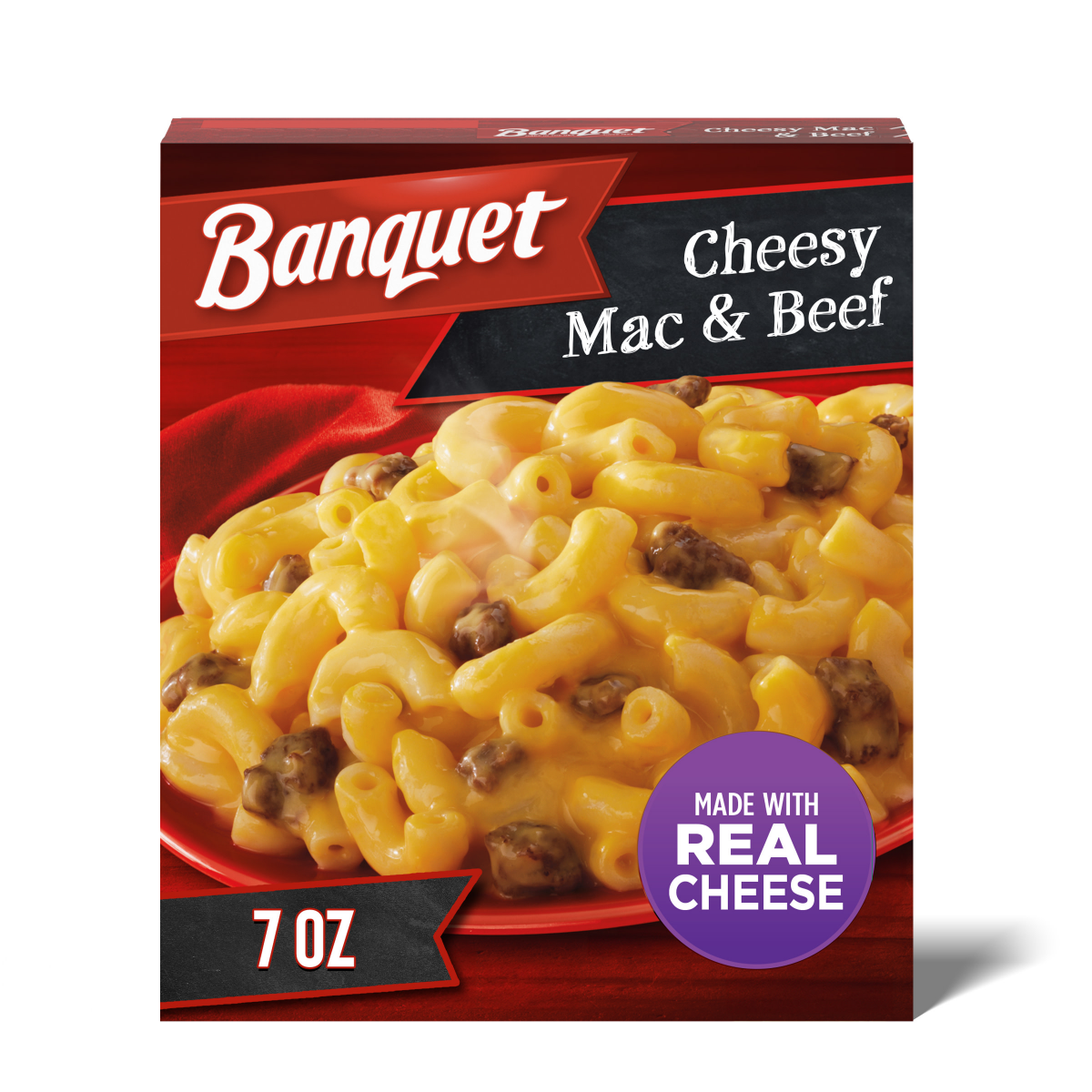 Made with real cheese, Banquet Cheesy Mac & Beef Frozen Meal make fast, convenient lunches and dinners. Warm up with our deliciously cheesy and delightfully meaty Macaroni & Beef Meal, just like mom u…
