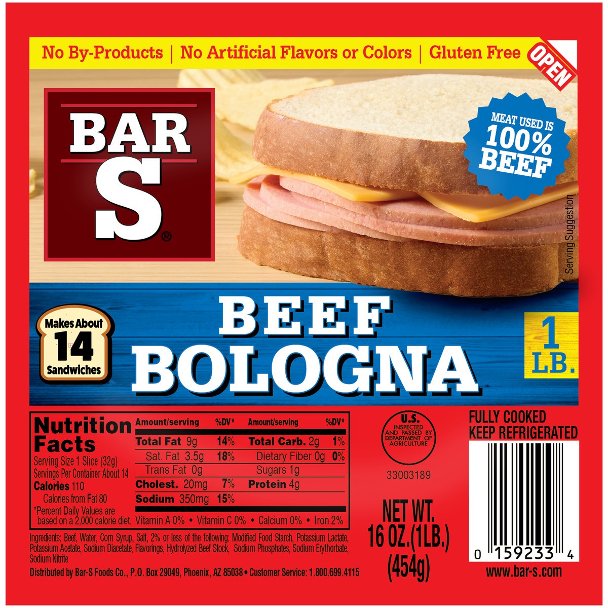 Bar-S Beef Bologna Sliced Deli-Style Lunch Meat 14 Count - 1 Lb