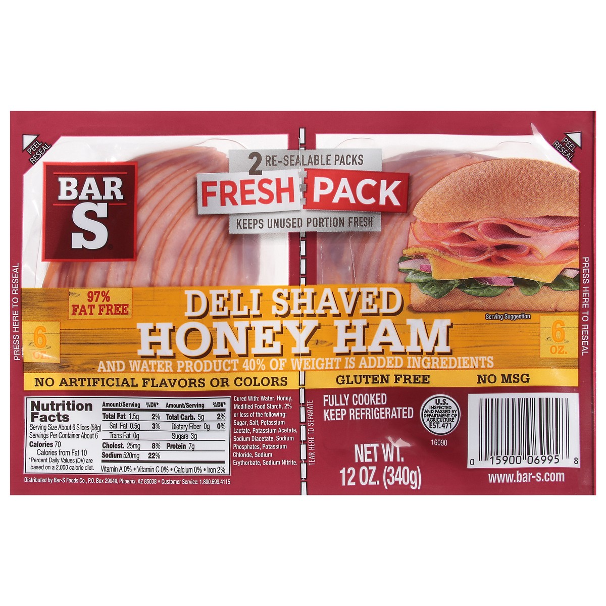 Bar-S Deli Shaved Honey Ham Fresh Pack 2 - 6 oz Packs