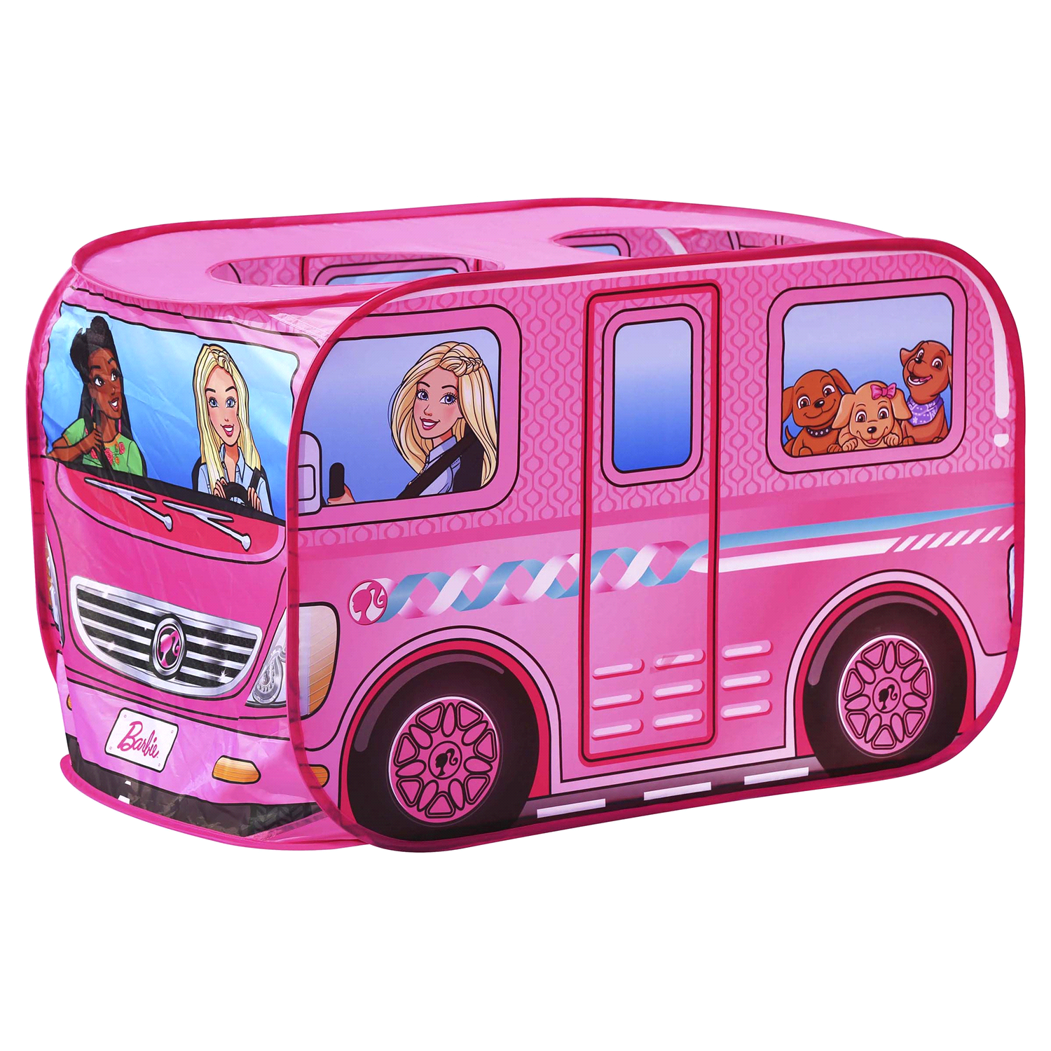 Children's dreams can become reality with the Barbie Dream Camper Pop-Up Tent. Designed with signature graphics and a realistic design, kids' imaginations will come alive as they hit the open road wit…